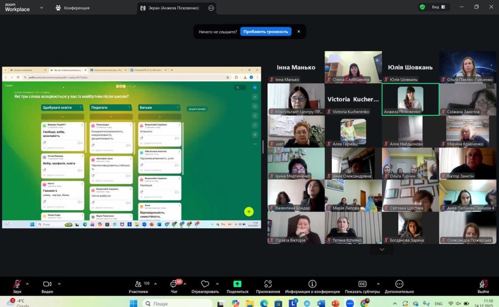 Вдячні керівництву Комунального закладу вищої освіти «Дніпровська академія неперервної освіти» ДОР за підтримку та сприяння проведенню заходу, а також ментору проєкту Пісковенко Анжелі Олександрівні, яка модерувала захід.