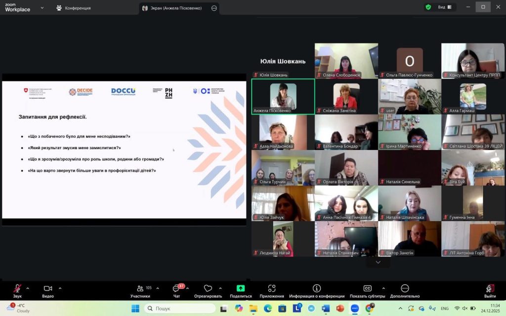 24 грудня 2025 року відбувся інформаційно-комунікаційний захід «Майбутнє, яке обираємо МИ: як громада підтримує вибір професії» в онлайн-форматі для представників учнівської, батьківської та педагогічної спільнот закладів загальної середньої освіти Кам’янської міської територіальної громади. Захід був проведений у рамках пілотування Швейцарсько-українського проєкту DECIDE – «Децентралізація для розвитку демократичної освіти» у партнерстві з Міністерством освіти і науки України, обласними військовими адміністраціями, органами місцевого самоврядування, закладами освіти та роботодавцями.